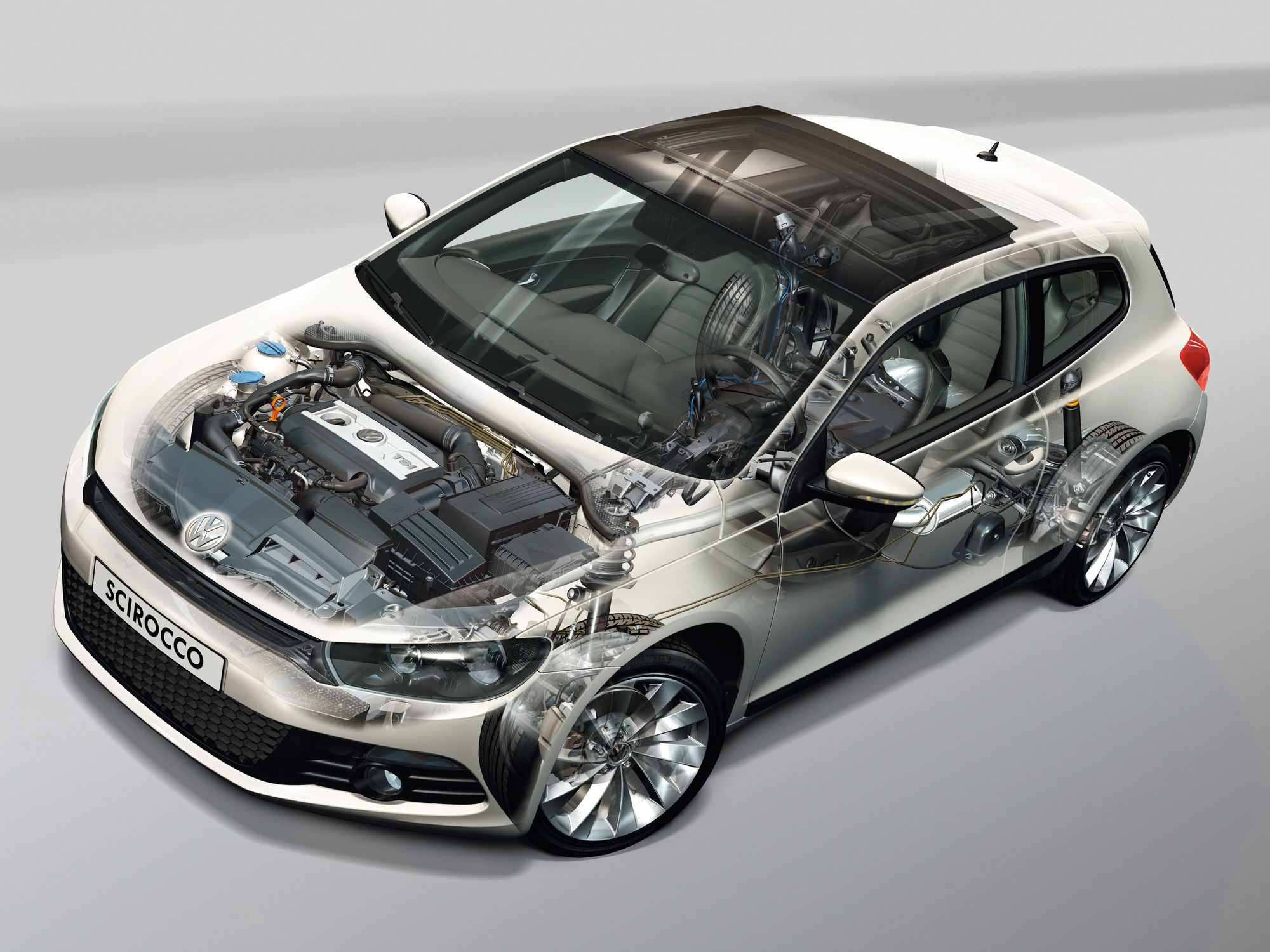 Presisi tidak akan tercapai tanpa kekakuan struktur bodi. Chassis Scirocco dibangun dengan baja berkekuatan tinggi (high-tensile steel) yang disambung menggunakan teknik laser welding. Tingkat kekakuan torsi yang tinggi memastikan bahwa bodi mobil tidak "melintir" saat menerima beban puntir di tikungan ekstrem.