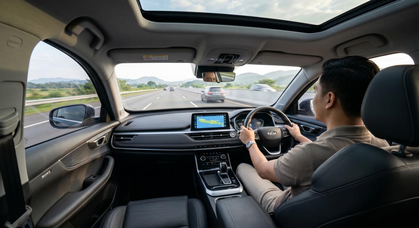 Selama pengujian kecepatan tinggi, kenyamanan akustik didukung oleh sistem Intelligent Voice Assistant. Anda bisa mengontrol suhu AC atau membuka panoramic sunroof tanpa harus kehilangan fokus karena kebisingan luar. Mikrofon yang digunakan Chery mampu menangkap perintah suara dengan jernih meski mobil sedang melaju kencang, menandakan bahwa lingkungan interior memang tenang secara akustik.