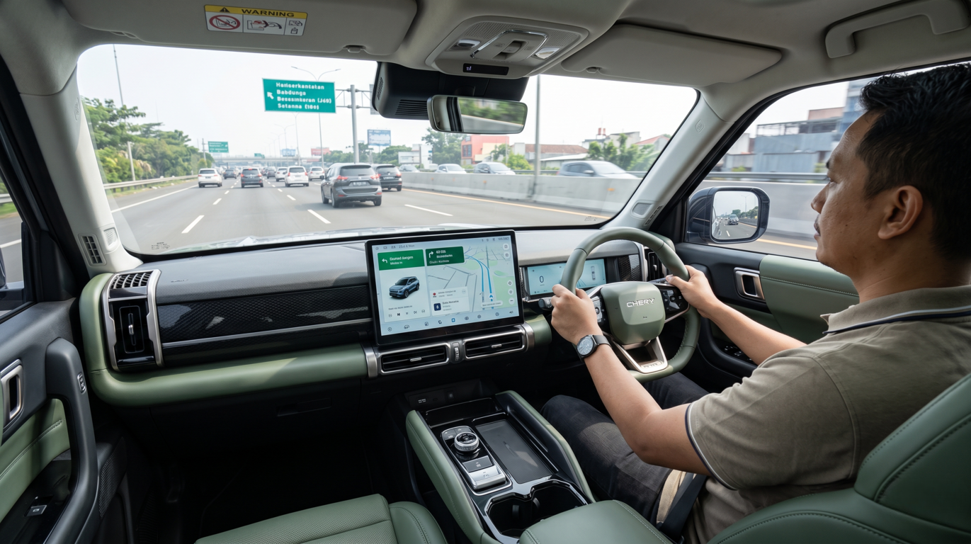 Masuk ke dalam kabin, nuansa "Rasa Mobil Eropa" semakin kental terasa. Chery meninggalkan kesan desain Asia yang biasanya penuh dengan tombol fisik, beralih ke konsep minimalis yang elegan. Dashboard didominasi oleh layar sentuh berukuran sangat besar yang menjadi pusat kendali hampir seluruh fitur kendaraan.
