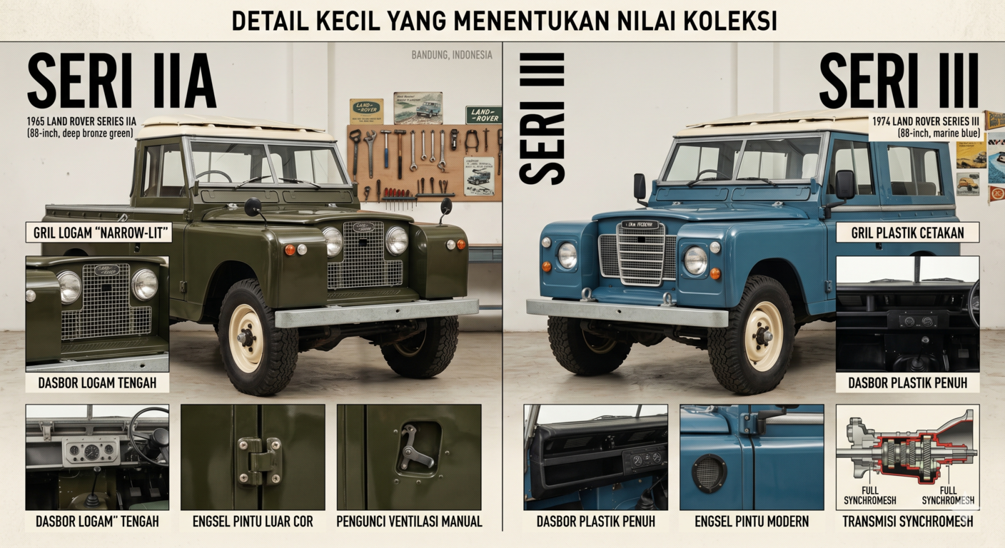 Dunia restorasi dan koleksi kendaraan four-wheel drive (4WD) klasik sering kali terjebak dalam perdebatan antara fungsionalitas dan estetika. Di puncak hierarki kendaraan petualang, nama Land Rover berdiri kokoh. Namun, bagi para purist, perbandingan antara Seri IIA dan Seri III bukan sekadar soal tahun produksi. Ini adalah tentang transisi desain dari era mekanis murni menuju kenyamanan modern yang mulai merayap masuk. Detail-detail kecil inilah yang pada akhirnya menentukan apakah sebuah unit layak dihargai setinggi langit atau sekadar menjadi kendaraan harian yang tangguh.
