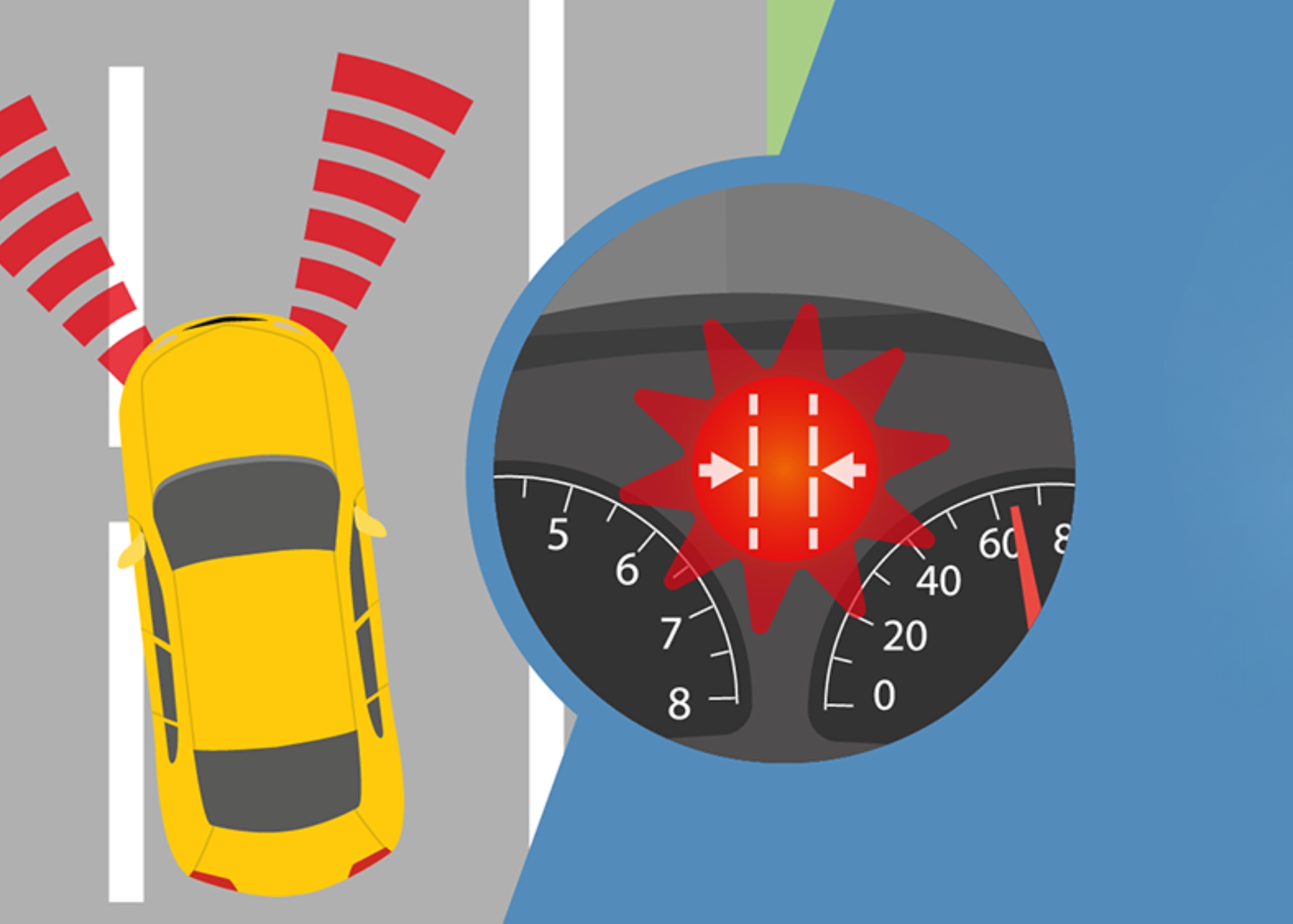 Peringatan Visual: Muncul ikon mobil yang melintasi garis di panel instrumen (MID) atau Head-Up Display (HUD). Biasanya warna ikon akan berubah dari hijau menjadi jingga atau merah yang berkedip.