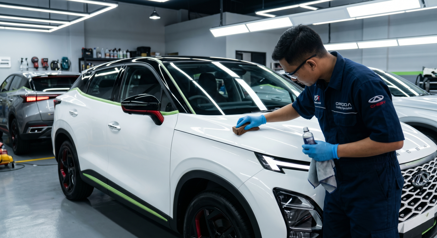 Mengingat harga Chery Omoda 5 yang cukup premium, jangan tergiur dengan jasa coating murah yang menggunakan material berkualitas rendah. Pastikan workshop yang Anda pilih memiliki: